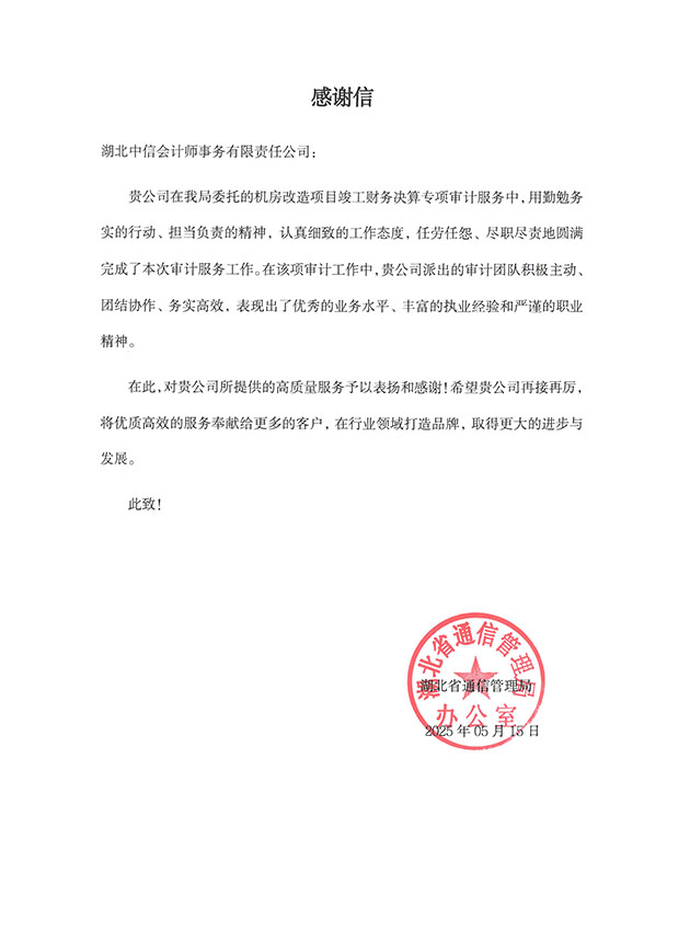 湖北省通信管理局感謝信