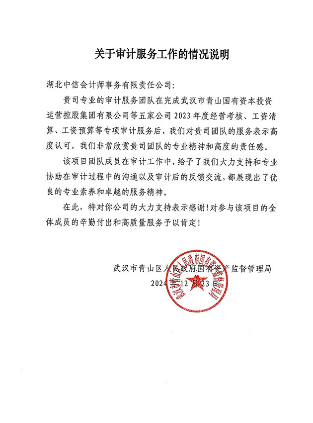 武漢市青山區(qū)人民政府國(guó)有資產(chǎn)監(jiān)督管理局表?yè)P(yáng)信
