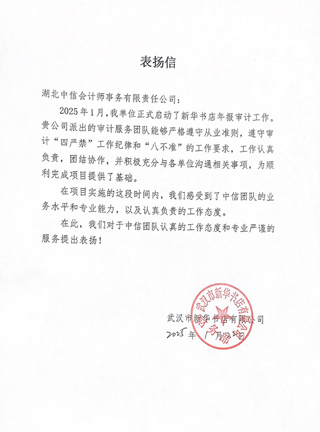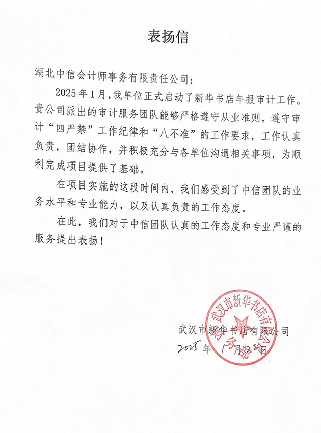 武漢市新華書店有限公司表?yè)P(yáng)信