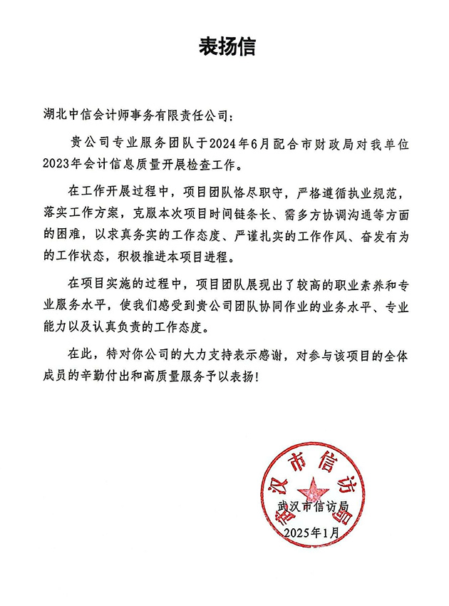 武漢市信訪局表?yè)P(yáng)信
