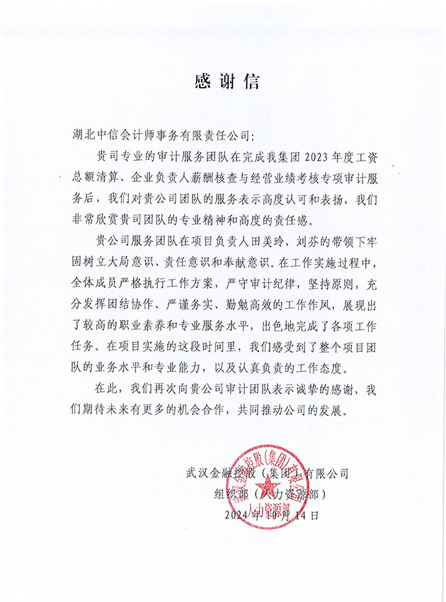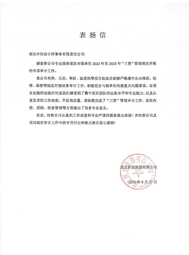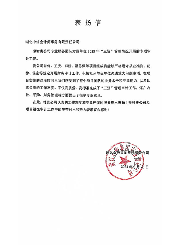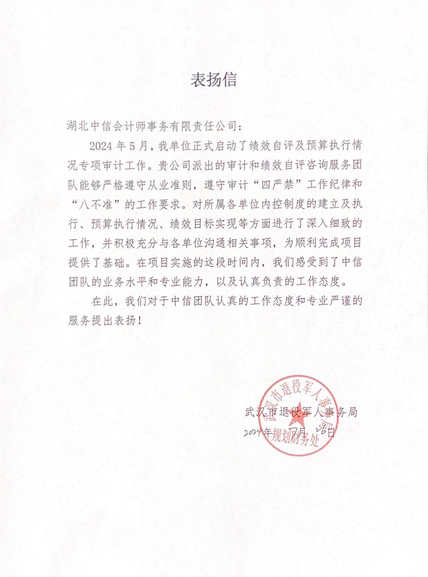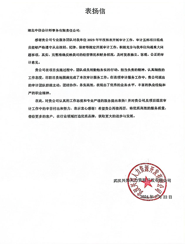 武漢興邦人力資源開發(fā)有限公司表揚信