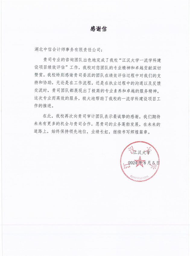 武漢市江岸區(qū)澳門路小學(xué)感謝信