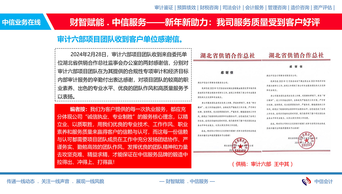 ——我司專項審計服務質(zhì)量受到客戶好評 -