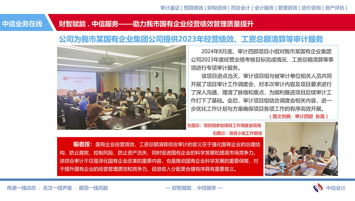 09/132024公司為我市某國有企業(yè)集團(tuán)公司提供2023年經(jīng)營績效、工資總額清算等審計(jì)服務(wù)