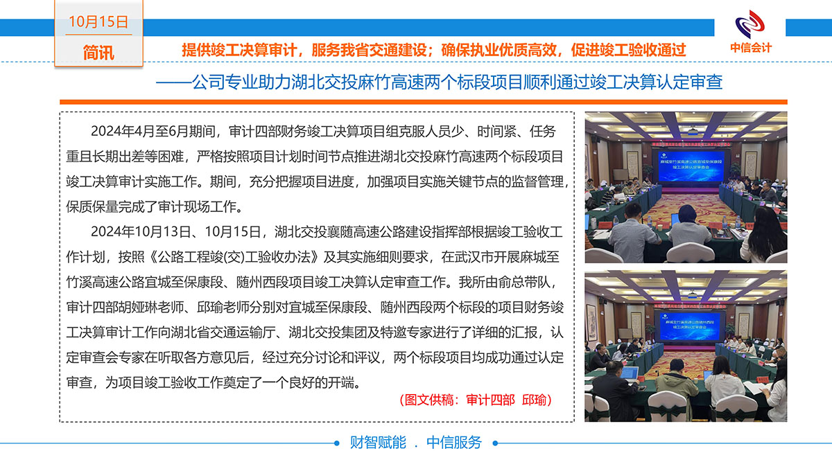 10/172024提供竣工決算審計,服務我省交通建設;確保執(zhí)業(yè)優(yōu)質(zhì)高效,促進竣工驗收通過