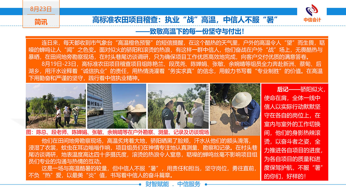 08/272024高標準農(nóng)田項目稽查:執(zhí)業(yè)"戰(zhàn)"高溫,中信人不服"暑"