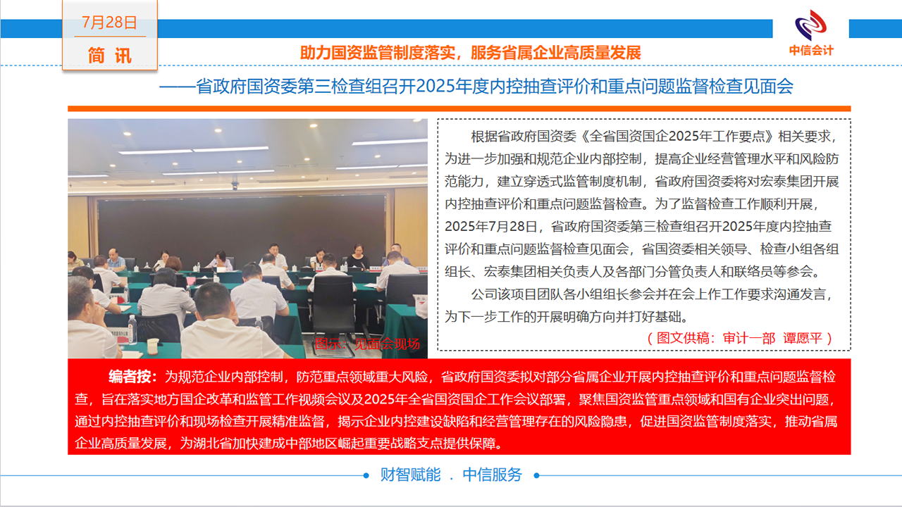 ——省政府國資委對宏泰集團開展2025年度內控抽查評價和重點問題監(jiān)督檢查工作有序高效開展 -