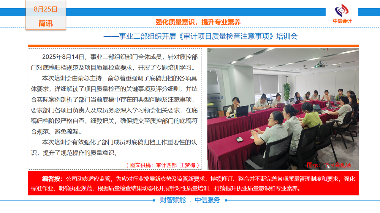 ——事業(yè)二部組織開展《審計項目質量檢查注意事項》培訓會 -