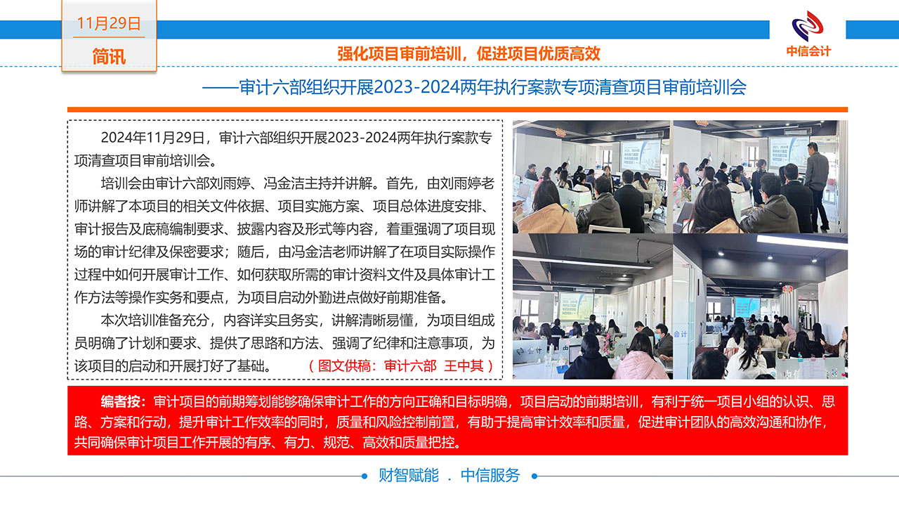 12/062024強(qiáng)化項(xiàng)目審前培訓(xùn),促進(jìn)項(xiàng)目?jī)?yōu)質(zhì)高效