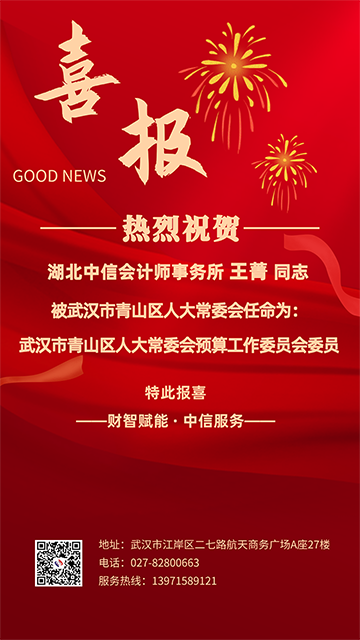 熱烈祝賀王菁同志授任為武漢市青山區(qū)人大常委會預(yù)算工作委員會委員
