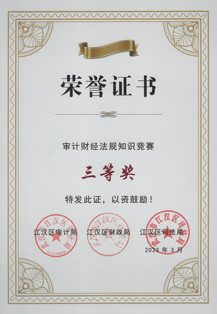 “審計(jì)財(cái)經(jīng)法規(guī)知識(shí)競(jìng)賽”決賽中榮獲三等獎(jiǎng)