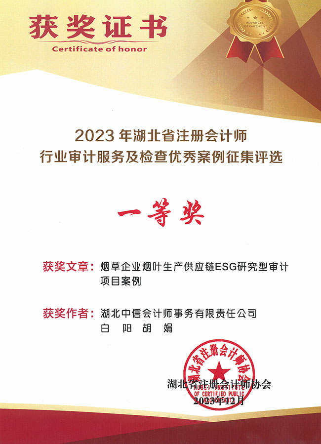 2023年湖北省行業(yè)審計(jì)服務(wù)及檢查優(yōu)秀案例一等獎(jiǎng)