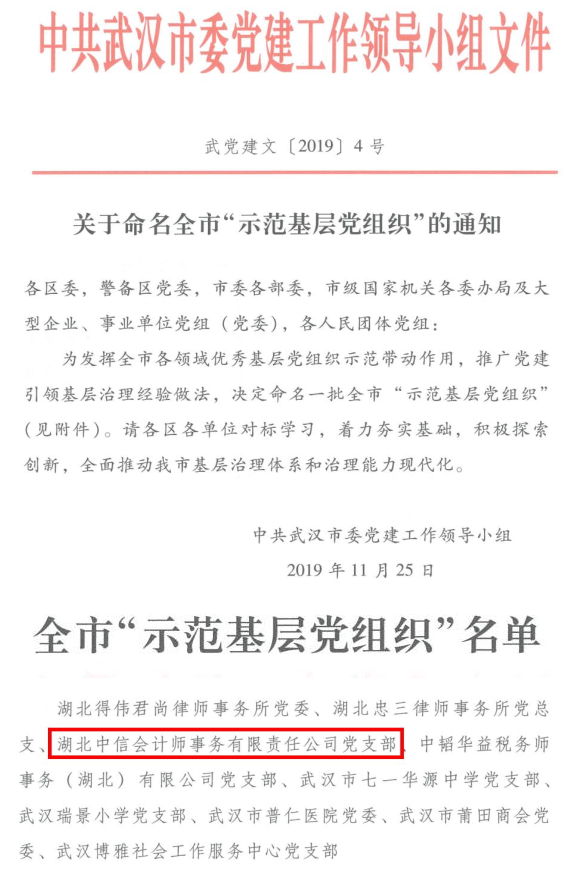 2019年度武漢市注冊(cè)會(huì)計(jì)師行業(yè)“先進(jìn)基層黨組織”