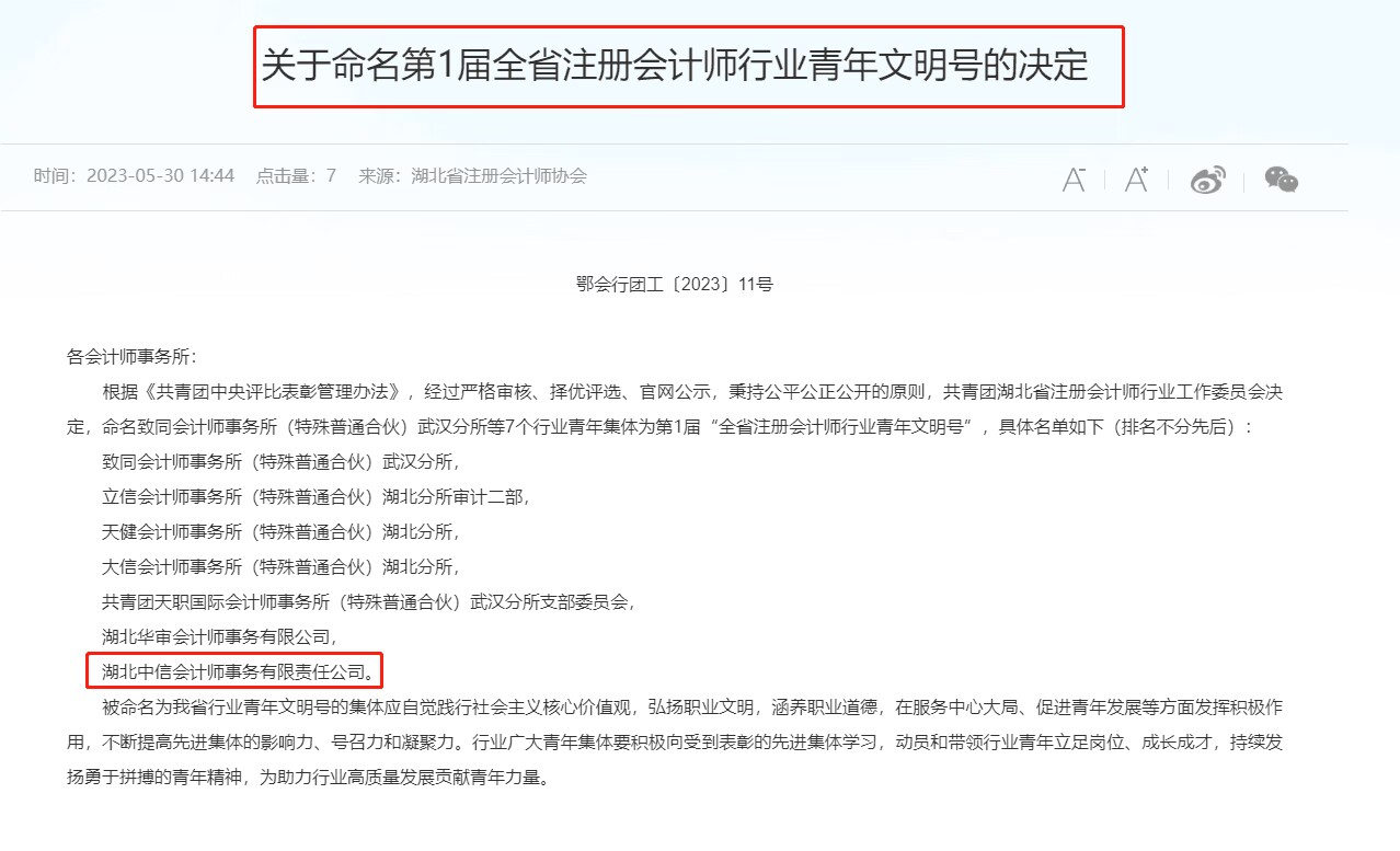 05/312023關于命名第1屆全省注冊會計師行業(yè)青年文明號的決定